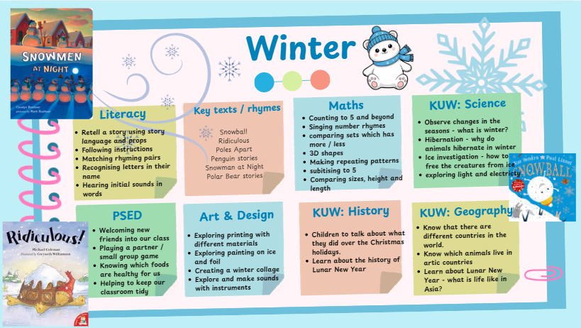 This term we will be welcoming new children into the class and exploring the season Winter.